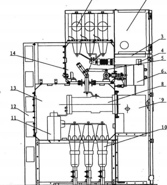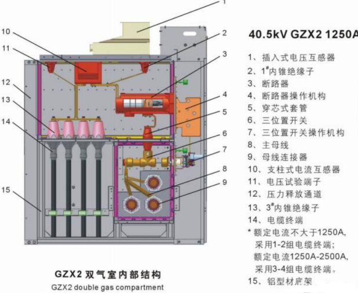 國內(nèi)則主要是西安森源聯(lián)合開發(fā)的GZX系列,額定電流在2500A及以下,其結(jié)構(gòu)如下圖:(目前市場上主要是側(cè)擴和頂擴,單氣室,雙氣室,三氣室的等)國內(nèi)代表性廠家主要有常州太平洋,寧波天安,正泰,順德開關(guān)等。
