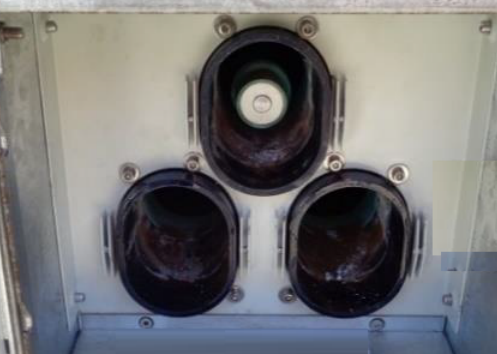 對于高濕度的地區(qū),凝露現(xiàn)象會(huì)經(jīng)常發(fā)生,一次回路密封在氣箱內(nèi)不受影響,操作機(jī)構(gòu)、二次回路等需要做好防護(hù),還要注意熔斷器倉的凝露。如澳大利亞某工業(yè)用戶,環(huán)網(wǎng)柜安裝在戶外箱內(nèi),早晨開機(jī)工作,晚上關(guān)閉電源沒有負(fù)荷,某日更換熔斷器,發(fā)現(xiàn)熔斷器座嚴(yán)重腐蝕,因?yàn)槿蹟嗥鱾}蓋與倉體完全密封,滿足IP67要求,硅橡膠壓縮量保證高壓熔斷器與柜體之間承受工頻耐受電壓,不可能潮氣進(jìn)入熔斷器倉,讓人百思不得其解。