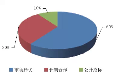 通過調(diào)研,所調(diào)查參與者單位對固體絕緣環(huán)網(wǎng)柜產(chǎn)品通過市場擇優(yōu)的占比60%;長期合作的占比30%;聯(lián)盟無;公開招標的占比10%。具體如下圖3所示。