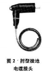 及檢修人員的安全。雖然國內(nèi)多個(gè)廠家針對電纜分支箱、箱式變及環(huán)網(wǎng)開關(guān)柜制作的肘型接地電纜接頭(見圖2)可用來完成最后的接地工作,但無法做到之前電纜頭拆除工作的安全保護(hù),也就無法完成完整的技術(shù)措施。而本文研制的電纜分支箱驗(yàn)電接地工具(見圖3)就圓滿解決了該問題,可完成電纜分支箱停電工作時(shí)必須實(shí)施的一系列安全技術(shù)措施,保障檢修人員的人身安全。