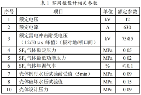 環網柜殼體形狀不同有箱式和筒式之分。由于箱式結構有利于完成進出線.配電計劃的實施,可是箱式在接受壓力的局限性,使箱體不能夠接受太高的壓力。下面介紹一種環網柜氣箱的規劃辦法。與氣箱規劃有關的環網柜額定參數見表1